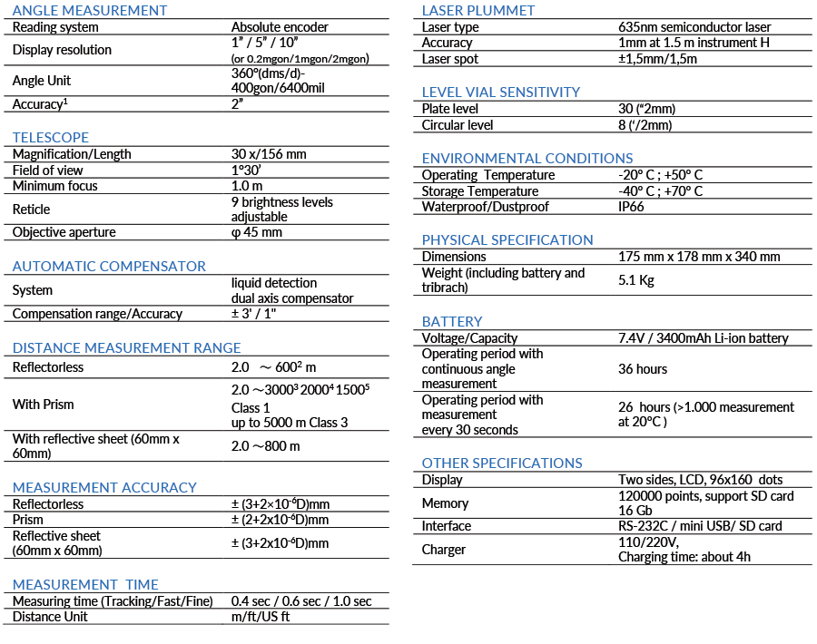 No limitation for distance measurements, up to 5.000 m with a single prism – 600 m reflectorless (KGC 90%) – and 2” as angular accuracy, always guarantee a reliable points calculation.