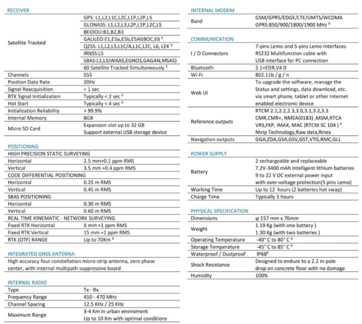 Powerful Precision Performance S900-SE is the result of the continuous evolution of the Stonex GNSS integrated receivers. Featuring a new, high accuracy multi constellation antenna, a powerful UHF transmitter and the GSM 4G modem, for a fully integrated communications choice, combined with a light and modern design. Stonex S900-SE integrated GNSS receiver tracks all the present constellations and satellite signals GPS, GLONASS, BEIDOU, GALILEO and QZSS and through the upgradable firmware offers the opportunity to be day by day updated with the latest available features. On S900-SE it is possible to insert 2 smart hot swappable batteries at the same time, ensuring a maximum of 12 hours of operation without stopping. The power level can be checked and seen on the controller or directly on a led bar on the battery.