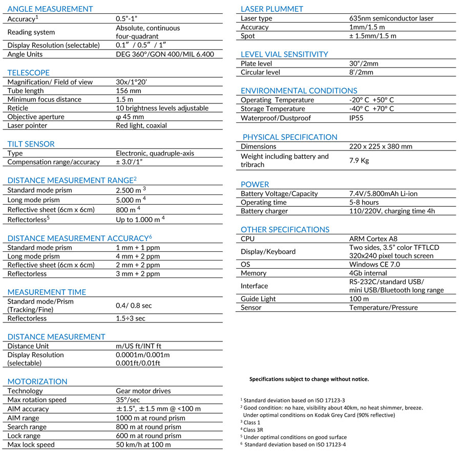 This motorized Total Station run Windows CE 7.0 operating system and each user can choose the software that best suits own needs. It supports also SDK and external control protocol for software developing.